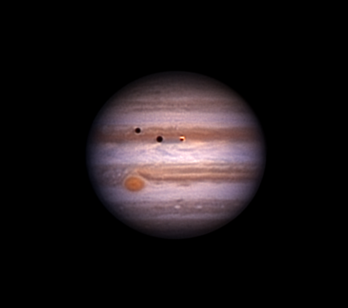 The three visible moons are from left to right,